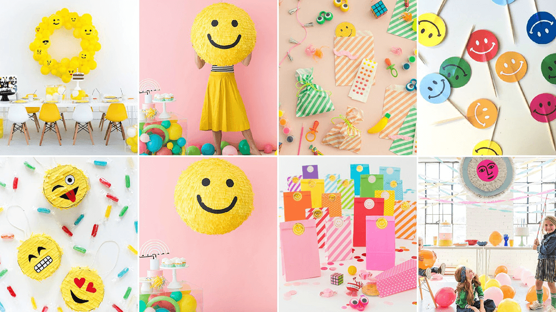 提升快乐和自爱的重要性是必不可少的,特别是在孩子和青少年主题派对之中。明黄色的大笑脸是实现这一目标的最佳方式,采用经典的微笑emoji表情包,用于装饰生日蛋糕、大气球、邀请函和纸巾准备以快乐为主的游戏和活动,比如分享你对朋友的喜爱,或记录最长的拥抱。