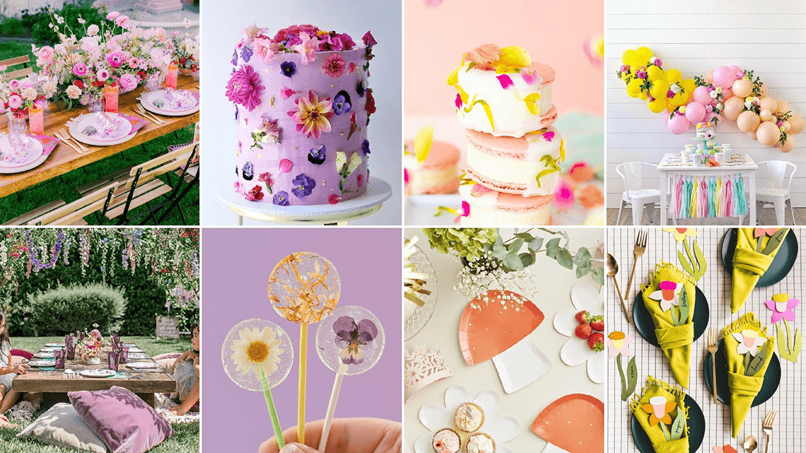 花园派对呈现出一种梦幻且奇异的焕新。开放公园和私人花园都可以变成魔幻天堂,采用悬挂式宝石色花卉和南部天冬草绿植,桌面装饰非常精致,搭配鲜粉色、紫色、黄色等水粉色调,采用花形盘子和手工摆件。打造阴凉舒适的角落,鼓励小朋友们制作他们自己新鲜采摘的花束,或采用干面条、可回收材料来打造以花朵为灵感的艺术作品。