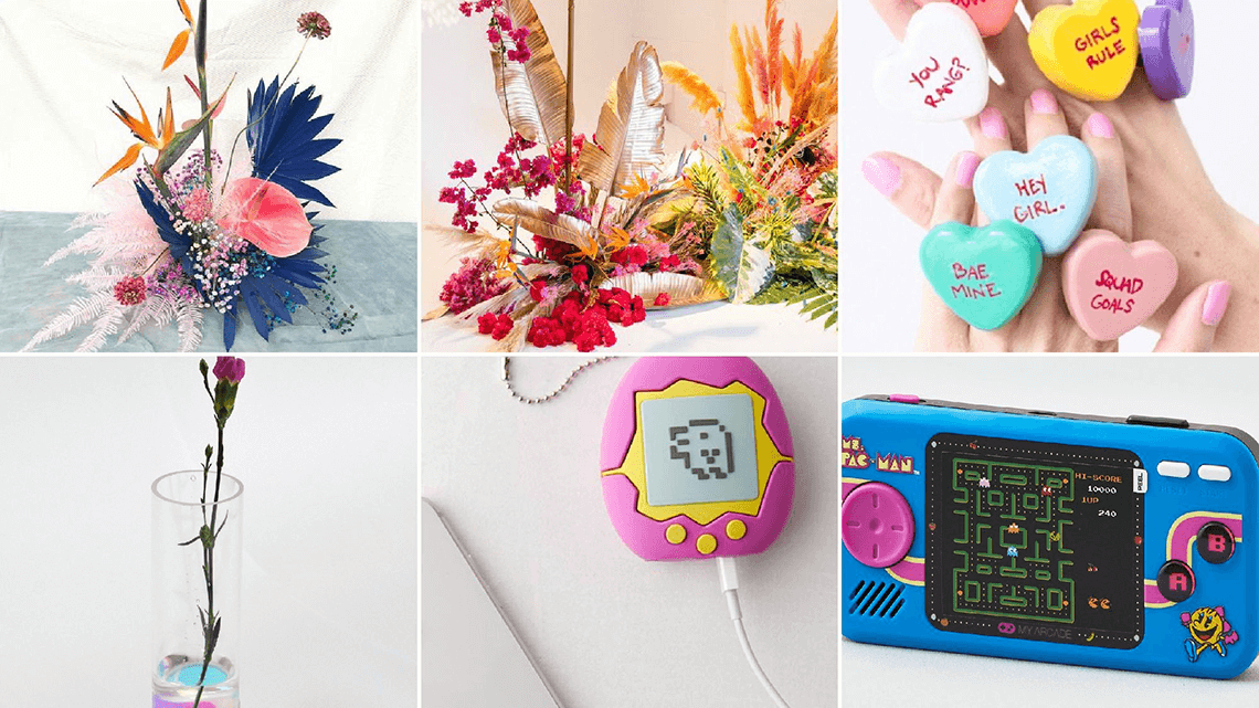 俏皮感对于礼品和花卉来说也很重要。产品的设计似乎关注改善人们情绪的特质。赋予花束数字化的外观,赋予绿植彩绘色彩和镂空的几何图形。时髦的基调点缀着礼品,而俗气复古的小饰品则以不同价位的变身可爱的纪念品。