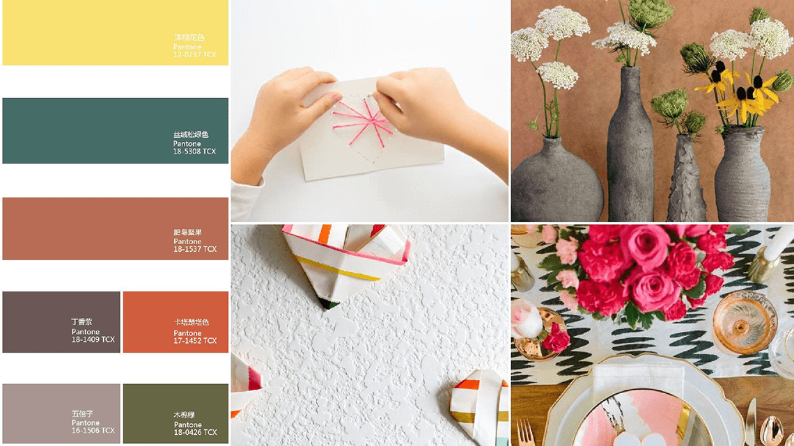 工艺感是印花和图案的关键,专注于迎合儿童和成人需求的DIY元素,使用手写和彩绘字体,形成富有艺术气息的排版设计。使用刺绣和丝带的细节,赋予文具和礼品舒适感和触感。随着设计保持简约感,并聚焦于插图或图案,简洁的背景就非常关键。拼贴和镂空细节增添了个性化之感。
