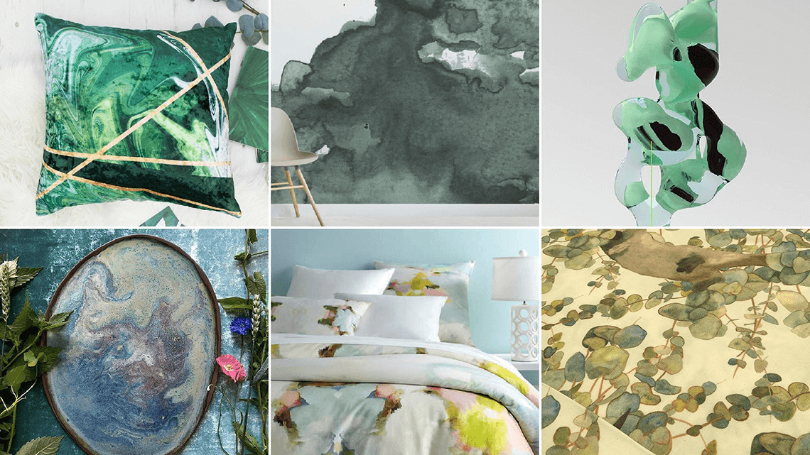 对于手工美学来说,抽象的水彩画是关键。拼接处或者遍布全身的布局可以升华该设计,尝试可以激发绘画效果的媒介,以创造原创艺术品,如直接在丝网印刷或手工上釉的陶瓷上创作。数字化艺术工具可以用来重新打造水印效果,是生成多色设计的便捷方式,对于商业化市场来说是理想选择。